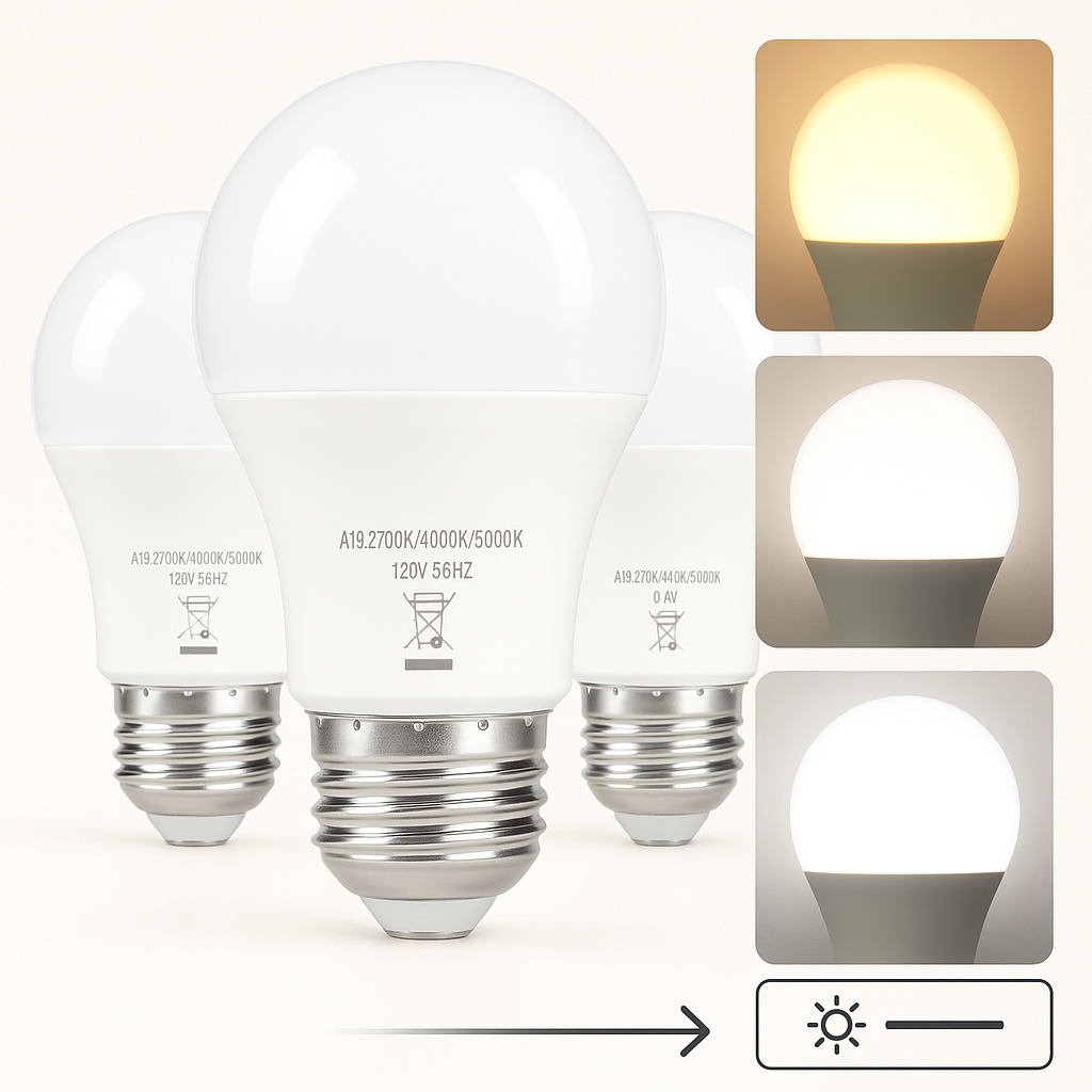 Ilumina tu espacio con versatilidad y confort gracias a este set de 4 bombillos LED de 3 modos, especialmente diseñados para lámparas de mesita de noche. Cada bombillo ofrece tres temperaturas de color distintas (cálida, neutra y fría), que puedes alternar fácilmente con solo encender y apagar el interruptor, adaptándose a diferentes momentos del día o estados de ánimo. Esta función te permite crear ambientes acogedores para descansar, una luz neutra para lectura o una iluminación fría para mayor concentración.