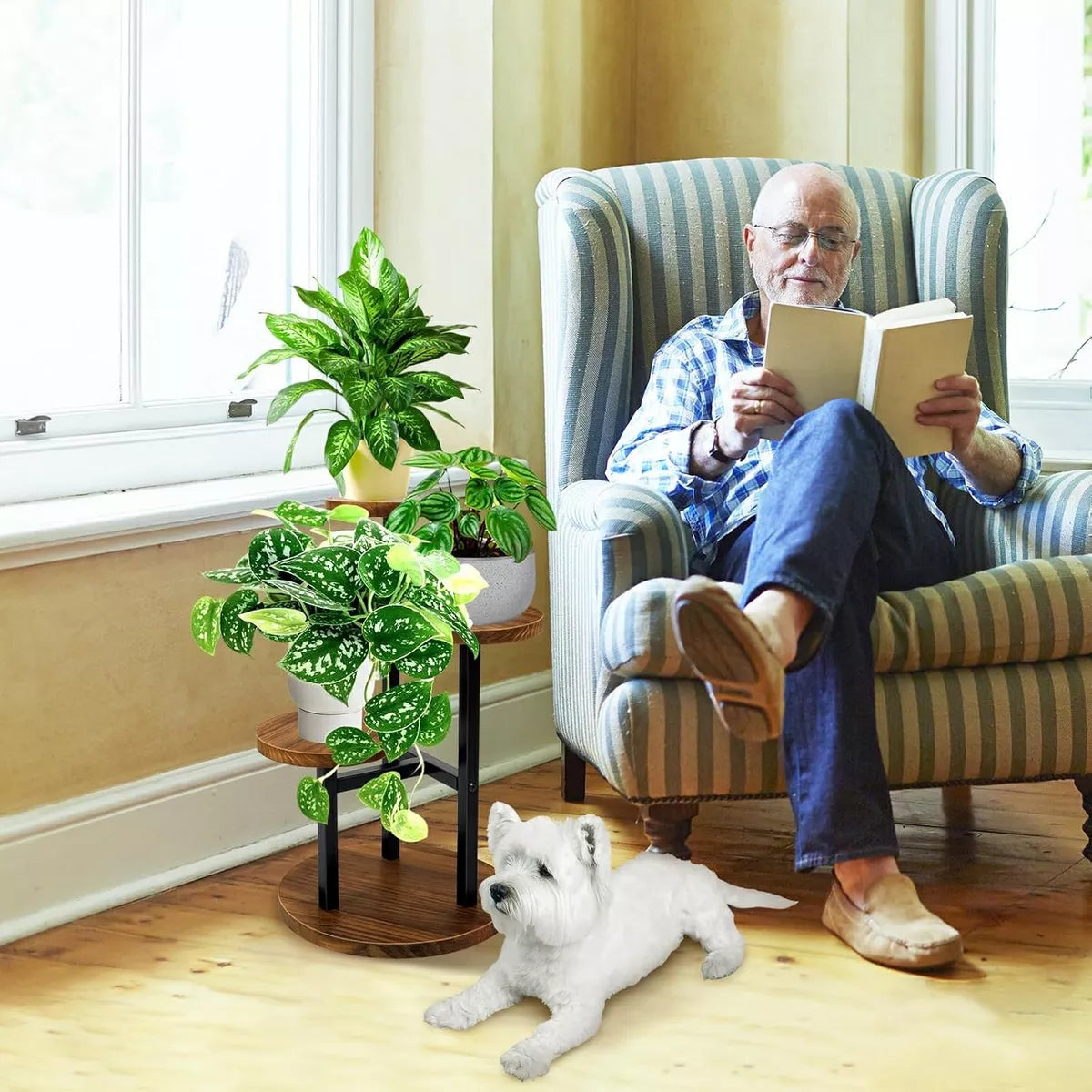 Diseñado con 3 niveles, permite exhibir varias plantas en un solo espacio, optimizando el área y permitiendo que cada planta reciba más luz natural. Es perfecto para decorar rincones de la sala, dormitorio, oficina, ventana o incluso el patio, aportando un toque elegante y natural al ambiente.