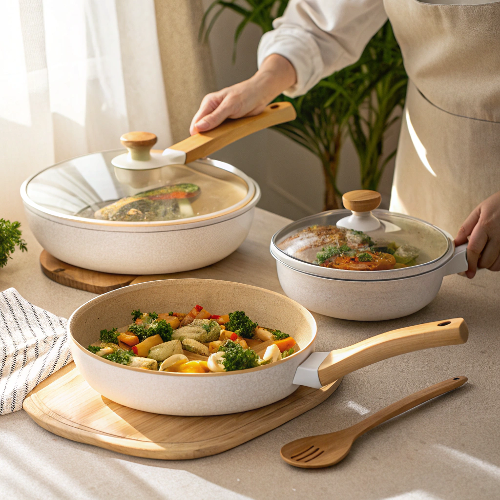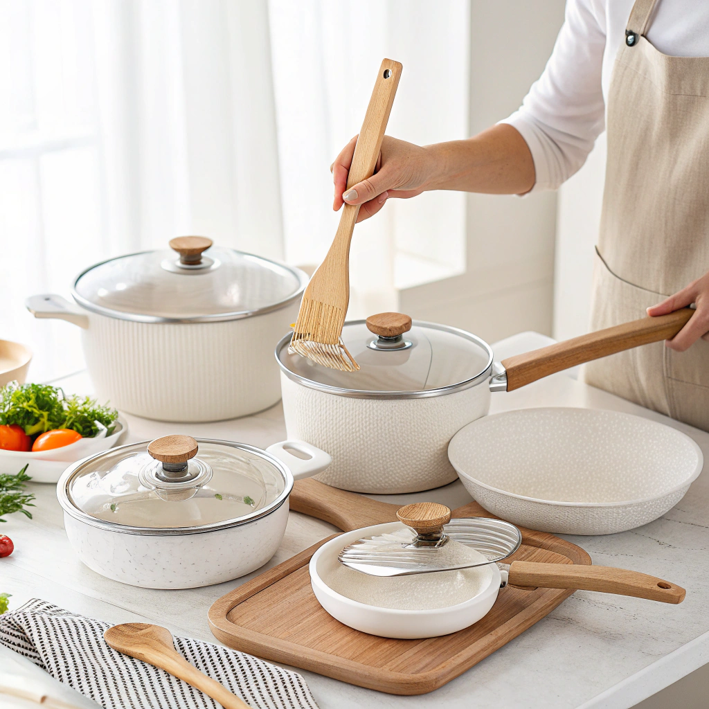 Juego de ollas, sartenes y utensilios antiadherentes