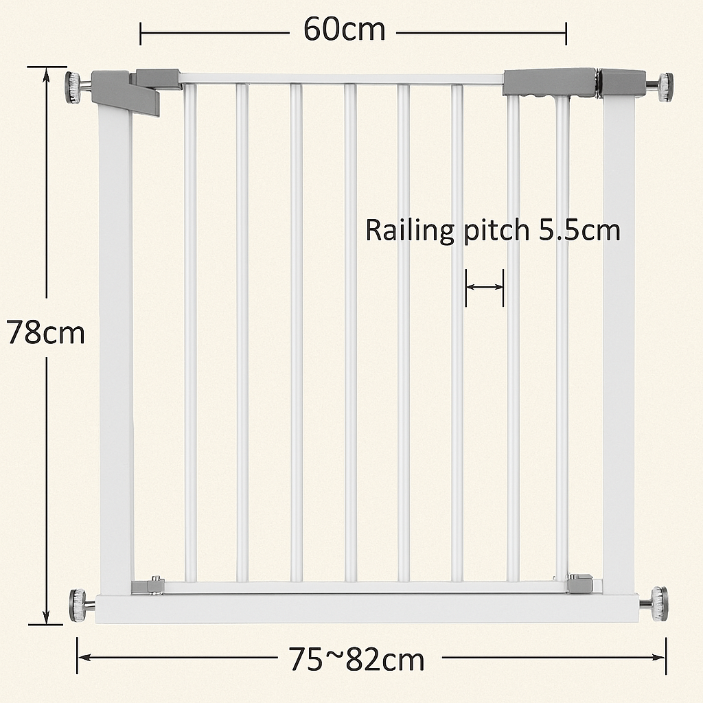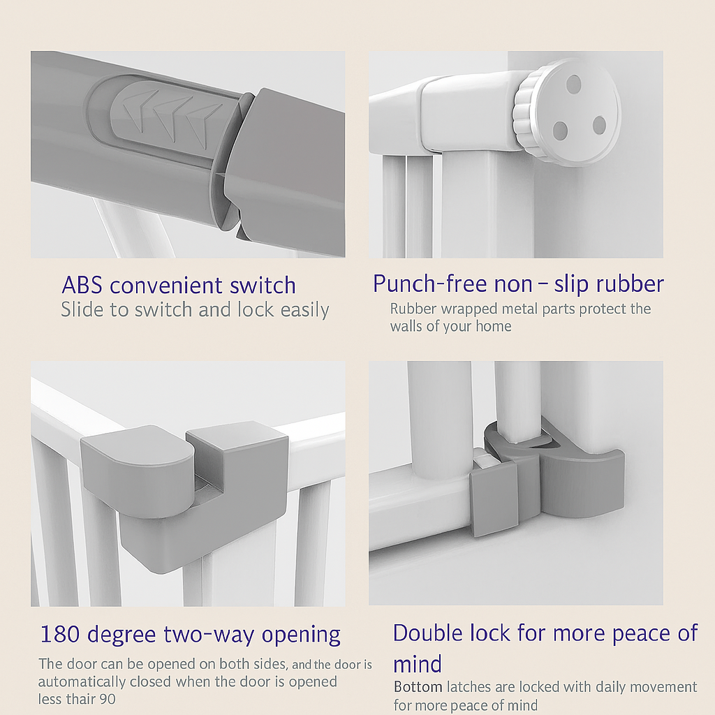 Esta puerta de seguridad está fabricada en acero resistente, con un diseño duradero que brinda protección efectiva tanto para bebés como para mascotas. Su estructura evita que puedan escalarla, y permite a los adultos abrirla sin necesidad de agacharse, ofreciendo comodidad y reduciendo riesgos dentro del hogar.